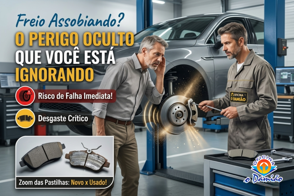 Alerta de Especialista: O assobio mudou para um som de “raspagem” grossa ou o pedal começou a vibrar muito? Pare o veículo o quanto antes. O sistema já ultrapassou o limite crítico e o risco de falha total é iminente.